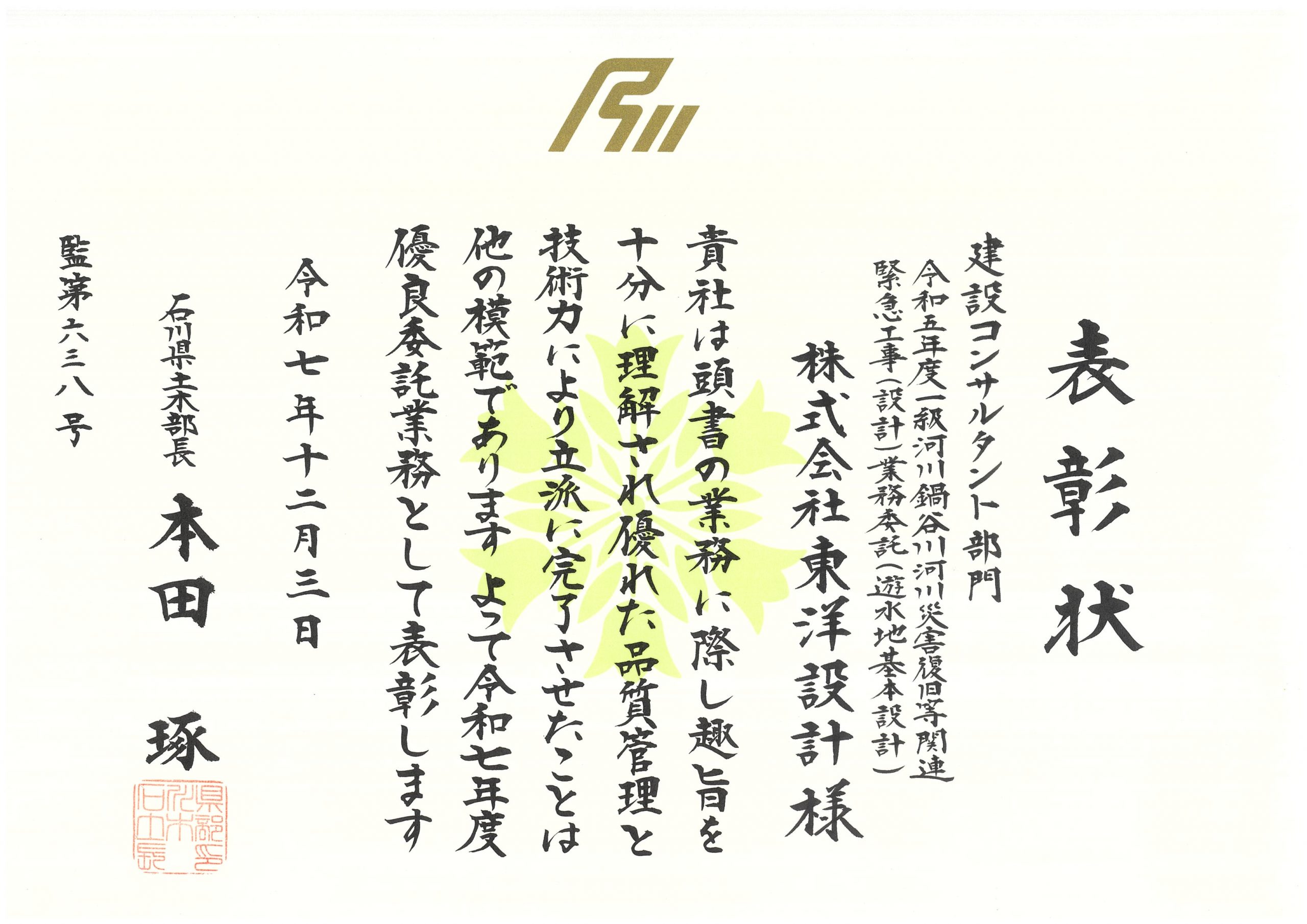 20251203石川県土木部長_表彰状